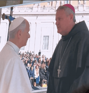 While on pilgrimage in Rome, Bishop Michael Martin, OFM Conv., bishop of Charlotte, had a brief but meaningful encounter with Pope Leo XIV during the